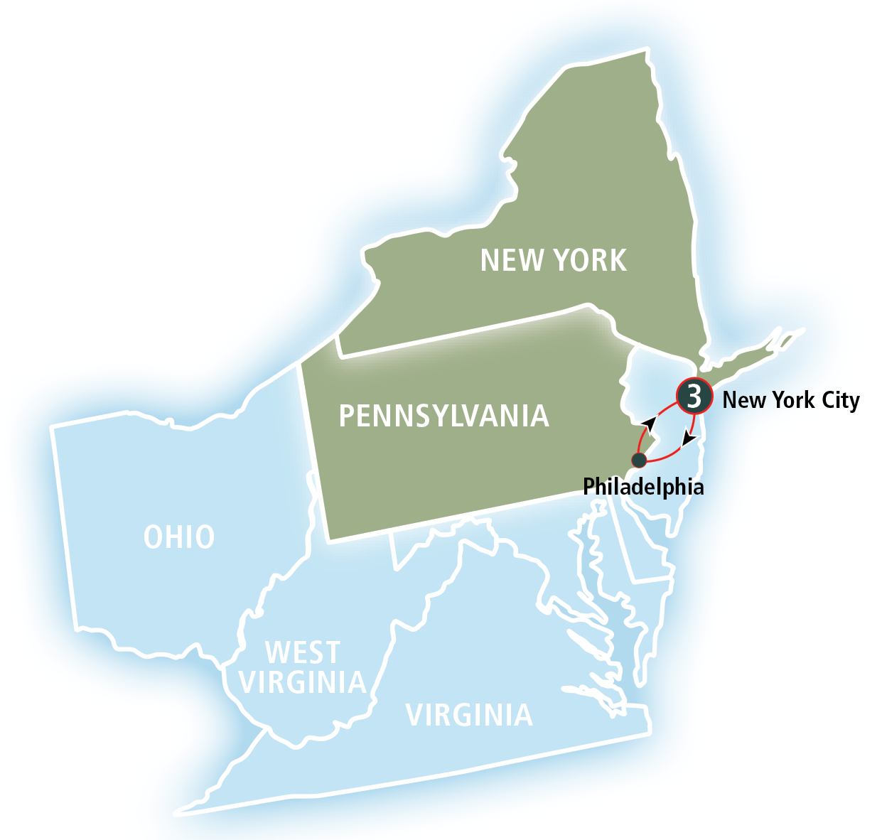 Traffic problems change from day to day but these are just guidelines to help you avoid the heaviest traffic on weekdays. The calculated flying distance from new york city to philadelphia is equal to 81 miles which is equal to 130 km. Direct flights do exist between new york city and philadelphia with american airlines, and the travel time on the plane is about the same as the train: The distance between new york and philadelphia is short but the amount of time to drive from new york to philadelphia would depend on the time of the day and the traffic and weather conditions. Your trip begins at philadelphia international airport in philadelphia, pennsylvania.